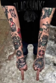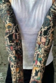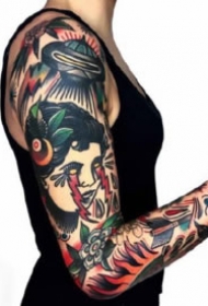 oldschool风格的拼接花臂刺青作品欣赏图片