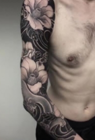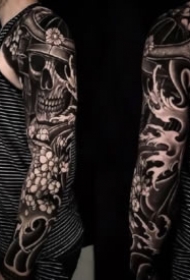9款极致黑白色的包臂花臂帅气纹身图案