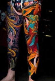 新传统风格的一组花臂花腿刺青欣赏图片