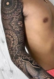 密密麻麻的几何梵花主题的大黑臂刺青图片