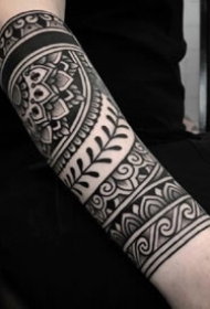 手臂上的黑图腾花臂刺青图案作品欣赏图片