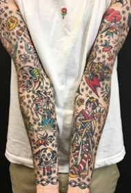 school花臂刺青--一组漂亮的school风格的花臂刺青图案作品图片