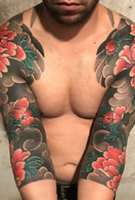 牡丹花等各种花朵的花臂刺青图案作品图片
