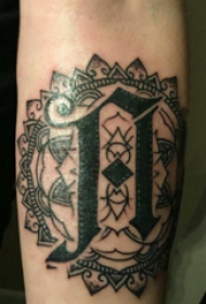 花体英文刺青 男生大臂上黑灰的花体英文纹身图案