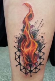 火的刺青图案 男生小腿上彩绘的火纹身图案