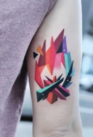 火的刺青图案 男生手臂上彩色的火炬纹身图案