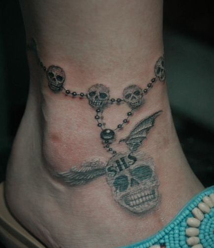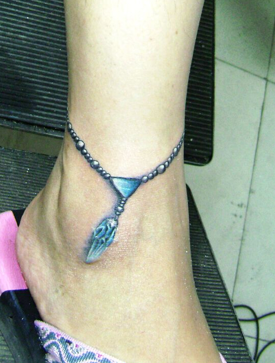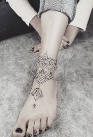 黑灰色脚链纹身图片 脚腕纹身什么图案好看