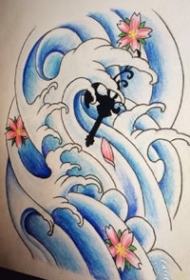 纹身吧浪花手稿图案大全图片