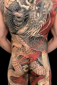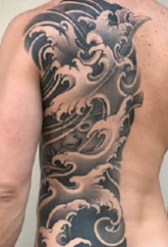 新传统风格的9张男性黑灰大满背纹身图片图片