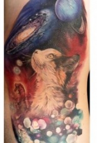 猫的刺青图案 形态各异或彩绘或黑灰风格猫的纹身图片