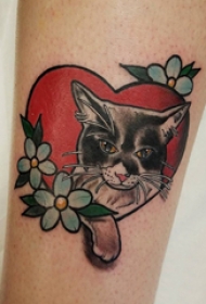 小猫咪刺青 男生小腿上小猫咪纹身图案