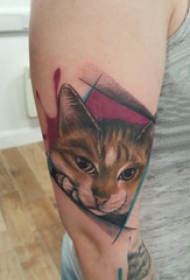 大臂刺青图 女生大臂上几何和猫咪纹身图案