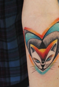 手臂刺青素材 男生手臂上心形和猫咪纹身图案