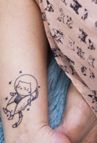 女生刺青手腕 女生手腕上月亮和猫咪纹身图案