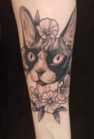 小猫咪刺青 男生手臂上猫纹身图案