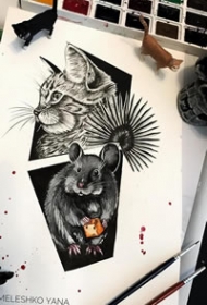 纹身吧猫咪手稿图案大全图片