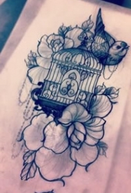 纹身吧鸟笼手稿图案大全图片