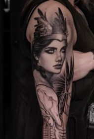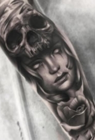 欧美黑灰小图人物骷髅眼睛写实肖像刺青图片
