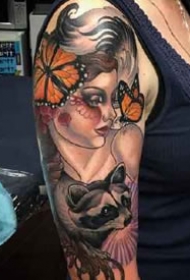 手臂女郎刺青:9张大臂和腿部的一组彩色女郎纹身图片