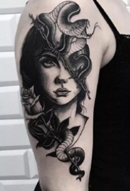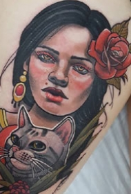 欧美写实风格的女性人物肖像刺青作品图案图片