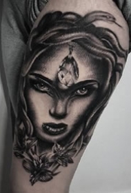 欧美风格的一组暗色调写实人物肖像纹身图案作品图片