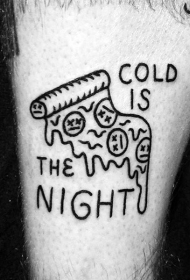 食物刺青 男生小腿上彩色的披萨食物纹身图案