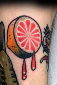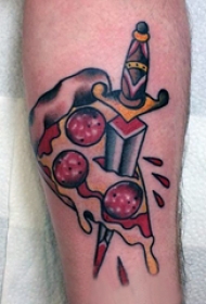 食物刺青 男生小腿上彩色的食物披萨纹身图案