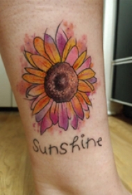 小腿对称刺青 女生小腿上英文和向日葵纹身图案