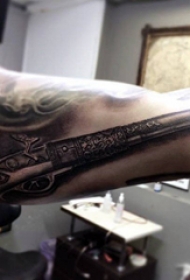 手臂刺青素材 男生手臂上枪和手纹身图案