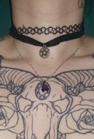 山羊头刺青撒旦 女生锁骨上羊头纹身图案