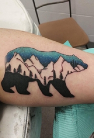 大臂刺青图 男生大臂上彩色的山脉纹身图案