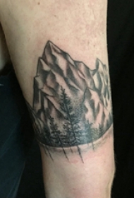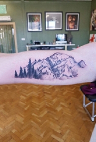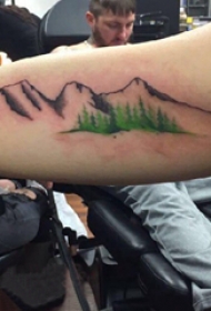 小山峰刺青 男生手臂上风景纹身图片