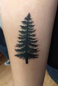 树林刺青图案 男生小腿上黑灰的树林纹身图案