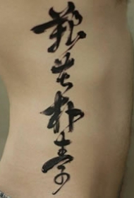 书法刺青 侧腰等部位的中文书法汉字纹身图片