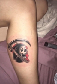 大臂刺青图 男生大臂上彩色的死神镰刀纹身图案