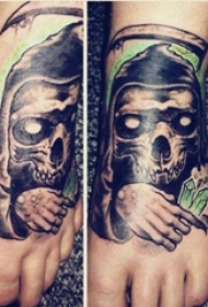 死神镰刀刺青图案 女生脚背上死神镰刀纹身图案