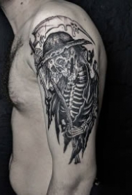 死神刺青 男生大臂上黑色的骷髅死神纹身图案