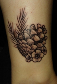 植物刺青 男生脚踝上黑色的松果纹身图案
