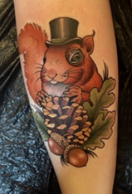 欧美小腿刺青 女生小腿上松果和松鼠纹身图案