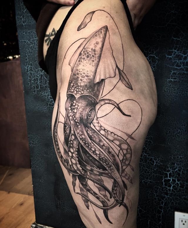 黑色章鱼刺青 女生臀部黑色的章鱼纹身图案