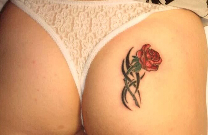 性感诱惑的臀部刺青 红花刺青臀部纹身