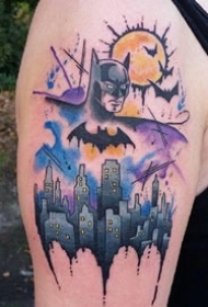 蝙蝠侠刺青 男生手臂上彩色的蝙蝠侠纹身图案