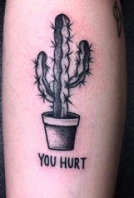欧美小腿刺青 女生小腿上英文和仙人掌纹身图案