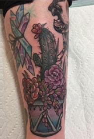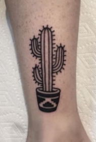 仙人掌刺青 女生小腿上多肉植物和仙人掌纹身图案