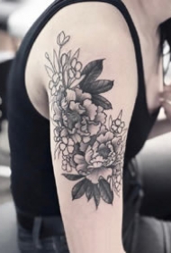 新传统花朵刺青:黑灰新传统风格的素花花卉纹身图片