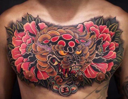 男士花胸刺青 9张传统风格的男性花胸纹身图案作品图片