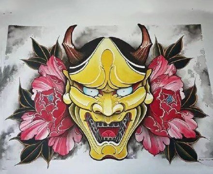霸气胸口纹身刺青手稿原图 鬼面具刺青纹身