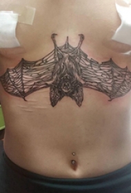 女生胸下刺青 女生胸下黑色的蝙蝠纹身图案