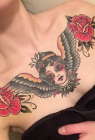 胸上刺青图案 女生胸上人物和翅膀纹身图案