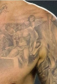 刺青神话人物 贝克汉姆胸部黑灰色的神话人物纹身图案